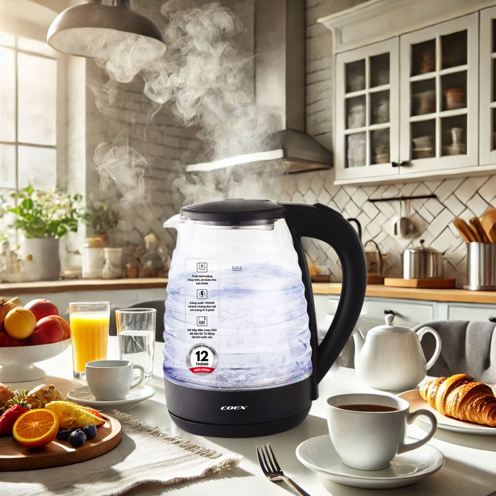 Bạn đang tìm kiếm một chiếc ấm đun nước siêu tốc vừa mạnh mẽ, bền bỉ, vừa an toàn cho sức khỏe? Ấm đun nước siêu tốc Coex CK-5123G 1500W chính là lựa chọn hoàn hảo dành cho bạn! Với thiết kế hiện đại, công suất mạnh mẽ và những tính năng thông minh, sản phẩm này sẽ giúp bạn tiết kiệm thời gian và trải nghiệm tiện nghi hơn trong cuộc sống hàng ngày.