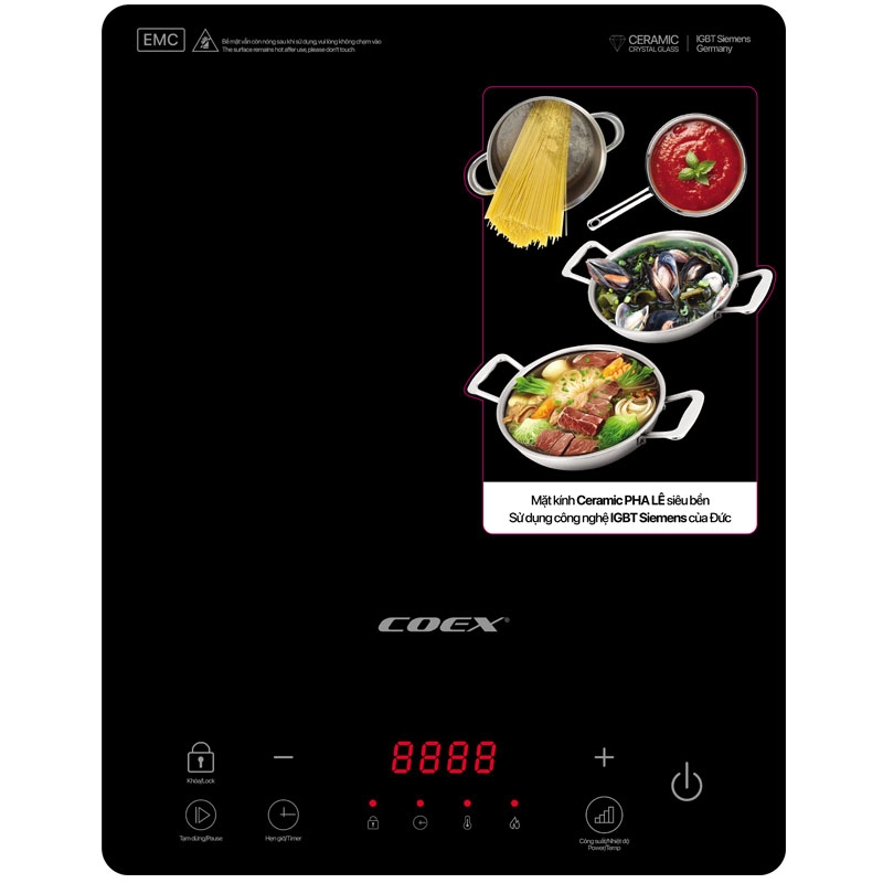 Bếp điện từ Coex CI-3485S ứng dụng công nghệ IGBT Siemens của Đức giúp kiểm soát nhiệt chính xác, hoạt động ổn định và tiết kiệm điện năng hiệu quả. Đây là yếu tố quan trọng giúp nâng cao tuổi thọ và hiệu suất sử dụng của bếp.