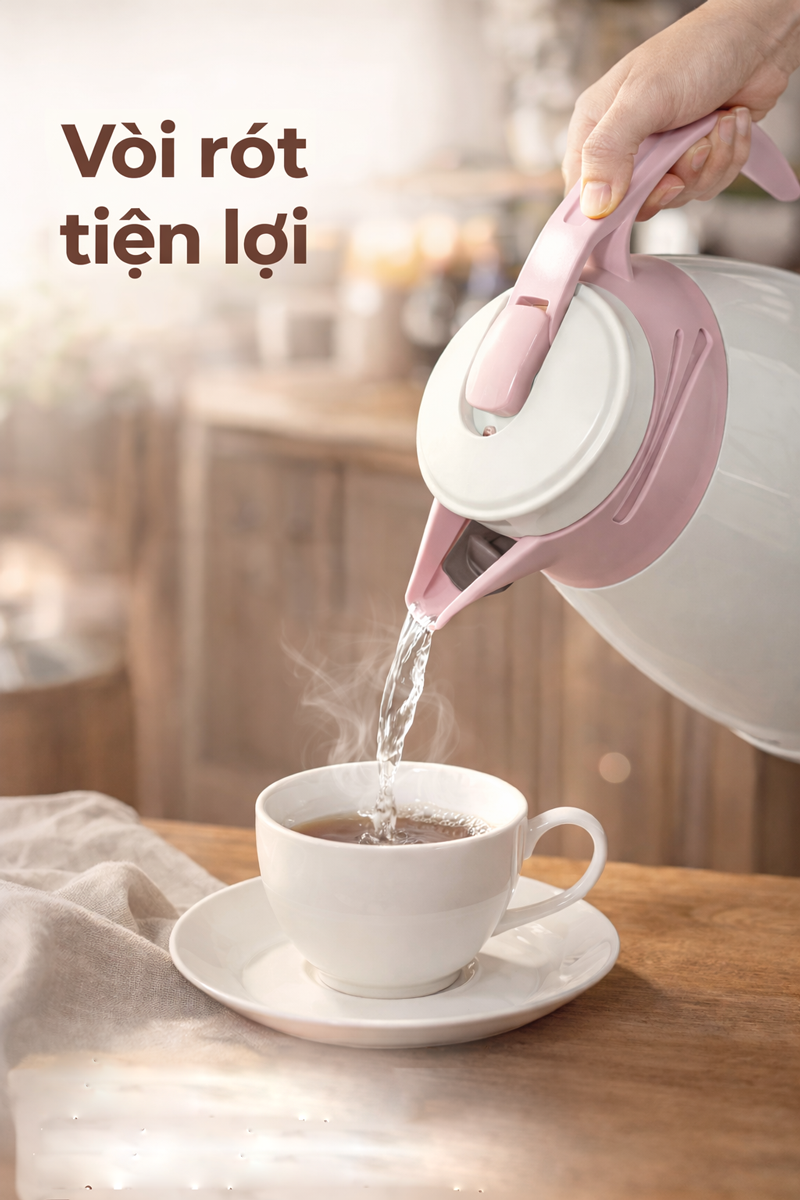 Trang bị vòi rót thông minh cùng cần gạt mở/đóng nhanh giúp bạn dễ dàng rót nước chỉ với một thao tác. Thiết kế kín khít giúp hạn chế rò rỉ và giữ nhiệt tốt hơn.