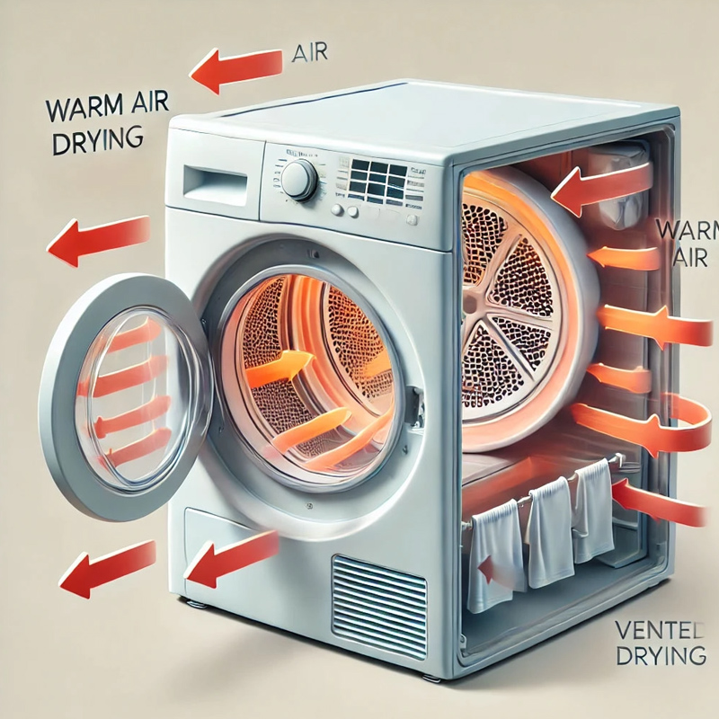 Hệ thống làm khô tuần hoàn bằng công nghệ sấy khô thông hơi ở nhiệt độ cao lên đến 80 độ C, giúp quần áo nhanh chóng khô ráo, hạn chế vi khuẩn và nấm mốc.